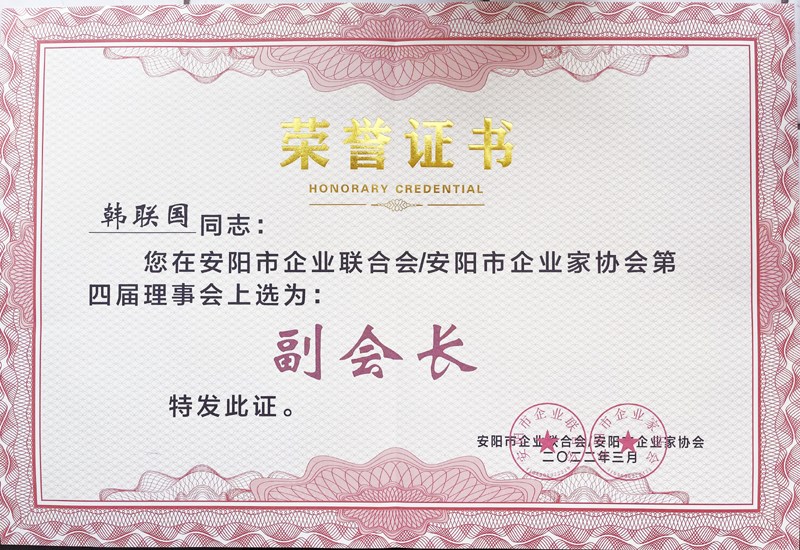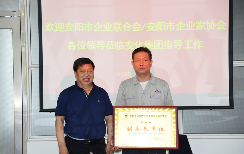 會上,安陽市企業聯合會/安陽市企業家協會向安化集團公司頒發了“第四屆副會長單位牌匾”及黨委書記、董事長韓聯國“安陽市企業聯合會/安陽市企業家協會第四屆理事會副會長”榮譽證書。